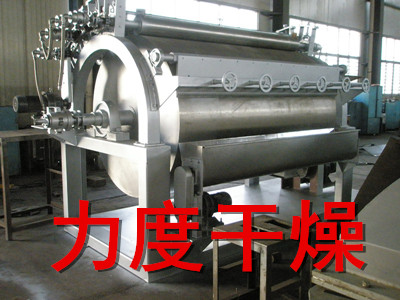 1、帶多個轉鼓的單鼓干燥機:是一種高精密干燥設備,適用于中高粘度和高濃度漿料的干燥,利用其轉輥的碾壓作用而形成均勻薄膜,有效防止漿料結團塊。適用于多種食品干燥。轉輥一般布有2-7支不等,以適應不同的漿料。有制成品品質好、色澤新、厚度可調性好的特點,料膜很薄,一般在0.15-1.5mm,且傳熱、傳質方向一致,干燥速率高,干燥強度:30-60kg·H2O/m2·h。